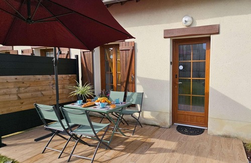 Maison individuelle entière et mitoyenne à un étage pour 4 voyageurs, 4 couchages, 2 oreillers par personnes: une chambre avec un lit queen size 160 ainsi qu'un espace de bureau, un lit bébé, une douche a l'italienne, cuisine ouverte sur séjour, un canapé lit convertible tout confort, WC séparé.