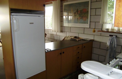 65m2 holiday house built with aerated concrete and a sun lounge extension. This holiday house is situated on 1,300 m2 garden ground and located in Ørding Ferieby. It has 3 rooms: 1 with double bed and 2 rooms with bunk beds. Aside from a sun lounge extension, it also has a cozy terrace with garden furniture and BBQ. Car port. Free Wi-fi.