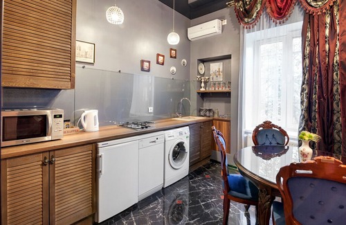 New apartment with a designer renovation and the atmosphere of the old Lviv. Forum area, to the Opera 7 minutes on foot. Apartment in a few apartment house, 1st floor of two. Three full double beds in the isolated rooms. In one of the rooms is a kitchen area. The kitchen is equipped with everything you need, also a dishwasher. LCD. Air conditioning. Wifi . Safe. CCTV. Italian furniture. Spacious bathroom. Quiet courtyard for smokers. Parking near home. Price depends on the number of people, the number of days and may vary on holidays and weekends. If you book from 4 days you will have discounts and transfer for free. The Robert Doms Brewery, the Malevich Club, the Zafrair restaurant, a full food court in shopping mall Forum Lviv, and the Krakow market are nearby.