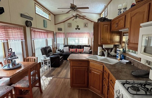 Your home away from home in Marquette, Iowa. This peaceful Park Model offers 2 queen beds, 1 full bed, and a cozy living room with a sofa bed. Enjoy the gorgeous surroundings in a country campground setting. It has modern amenities like AC, heating, WiFi, full kitchen, and a hair dryer. The bathroom features a refreshing shower. Our place is equipped for both long or short stays to make your vacation one to remember.