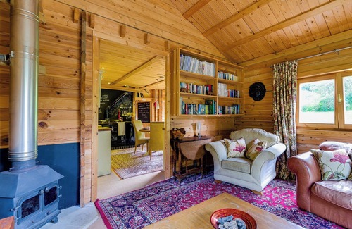 Bathroom: Roll Top Bath With Shower Attachment, Heated Towel Rail, Toilet. Central heating by Aga, (woodburner all year round, Aga winter only) electricity, bed linen and towels included. Initial logs for wood burner included. Welcome cream tea. Enclosed lawned garden with sitting-out area, garden furniture and barbecue. 40-acre woodland (shared with owner). Private parking for 2 cars. No smoking. Please note: No children. The property has a natural water supply from a borehole and there is a stream in the grounds.. Ash Mill Cabin is a world away from all life’s hustle and bustle. Approached over a long woodland track, this gem of a log cabin in a truly magical setting, next to the owner’s eco-friendly home in a clearing amongst the trees. Surrounded by 40 acres of ancient, unspoilt woodland and with views down over a tumbling stream in one of Devon’s wonderful hidden valleys, the detached cabin has been well-presented offering very comfortable holiday accommodation. The cosy living room with wood burner is complimented by a well-equipped kitchen, complete with a warming Aga at its heart. There is a spacious bedroom with views to the surrounding woodland and stream. The cabin is surrounded by an enclosed garden with a gate directly into the woodland.