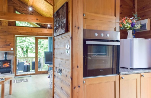Bedroom: Double (4ft 6in) Bed, Freeview TV Ensuite: Walk-In Shower, Heated Towel Rail, Toilet. Oil central heating, electricity, bed linen, towels and Wi-Fi included. Welcome pack.. Enclosed back garden with sitting-out area and garden furniture. Decked area with covered terrace. BBQ. Private parking for 2 cars. No smoking.. The Cabin offers peace and relaxation with beautiful views across the rolling Carmarthenshire countryside from your elevated decked terrace - perfect! This large lodge has been hand crafted by the owners within the grounds of their 26-acre small holding and offers lots of space, vaulted ceilings, beams and French doors leading to a covered terrace area which is perfect for watching the wildlife with a glass of wine.