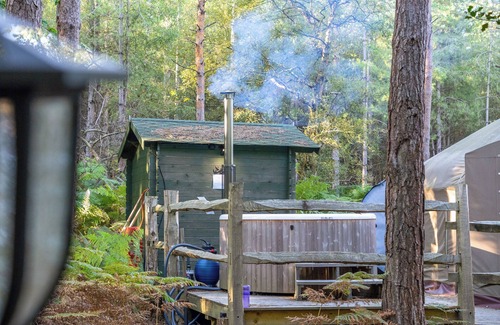 Bedroom area: Double (4ft 6in) Bed. Gas, electricity, bed linen are included and towels are not included. Heating from wood burner. External kitchen with gas hob and fridge/freezer. External shower room with shower cubicle and toilet. Decked area. Hot tub (private). Private parking for 2 cars. No smoking. Please note: There is no oven at this property.. This beautifully designed Yurt has been hand crafted from sustainable materials, with elegant steam-bent ribs, ensuring a sturdy structure. The simplicity of the engineering creates an extremely eye-pleasing feature. The Warren Yurt is a wonderfully welcoming, bright space that sleeps two, so is perfect for that couples escape to rugged Sussex. With a rustic charm that makes you feel a world away from everyday life, The Warren Yurt has been thoughtfully furnished to give it that traditional character throughout.