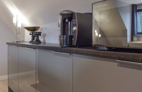 Kitchen area: With electric oven, induction hob, microwave, fridge, dishwasher and coffee machine.