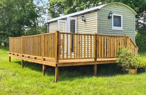 Shower Room: Walk-In Shower, Heated Towel Rail, Toilet. Electric central heating, electricity, bed linen, towels, Wi-Fi included. Patio with sitting out area. Private parking for 1 car. No smoking. Please note: There are 3 steps and a pond in the grounds.. Escape to The Shepherd’s Hut at Calvesfield Shaw for a tranquil retreat amidst the scenic beauty of Sussex countryside. This modern shepherd’s hut offers a quirky yet cosy escape, complete with an electric wood burner, ensuring warmth and comfort throughout your stay. Stay connected with complimentary Wi-Fi while immersing yourself in the serene surroundings. Nestled on a working farm spanning 37½ acres, this charming retreat invites you to explore its lush greenery and encounter its delightful inhabitants, including sheep, geese, ducks, and chickens. A fenced pond, just 30 yards from the entrance, adds to the picturesque charm. The hut itself boasts modern amenities, including a well-equipped kitchen, a shower room, and a Smart television, ensuring convenience and comfort. The inviting double bed promises a restful night’s sleep, while the large decking area provides an idyllic setting for outdoor dining and relaxation.