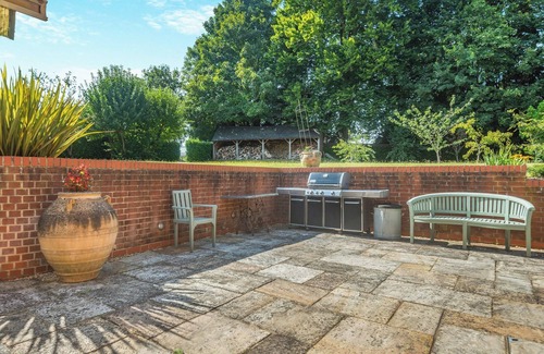 Whether you’re curling up with a good book or enjoying a quiet evening, the lounge is a perfect space to relax and unwind. The cottage provides Wi-Fi and a Smart TV, so you’re connected to all your entertainment needs. The en-suite bedroom features a luxurious king-size French bed, promising restful nights in opulent surroundings. The beautifully appointed room combines classic elegance with contemporary style, offering a peaceful sanctuary to retreat to after a day of exploring the countryside. Outside, guests have access to a private patio and a beautifully landscaped garden filled with an abundance of colourful flowers and fruit trees. Enjoy alfresco dining on the terrace, complete with a Weber BBQ and comfortable outdoor seating, perfect for soaking up the tranquil ambience of this idyllic setting.