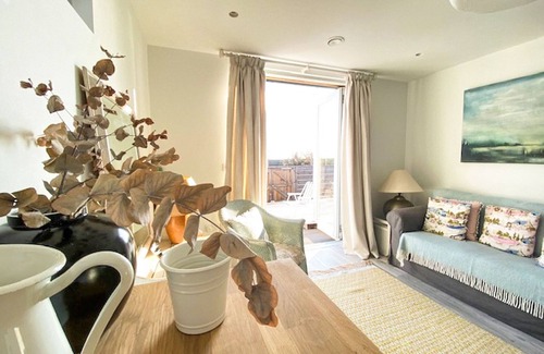 Shower Room: Walk-In Shower, Toilet. Electric central heating, electricity, bed linen, towels and Wi-Fi included. Front garden with sitting-out area, firepit and barbecue. Bike store. On road parking. No smoking. . This self-contained one-bedroom annexe looks out to the beachfront and decked patio area, the perfect spot from where you can watch the sunset on a summer’s evening or even dine outside al fresco style. The property has a living room with a Smart TV, a fully fitted kitchen and it has its own modern bathroom with walk in shower.