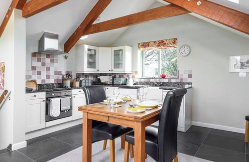 Shower Room: (3 Steps), Cubicle Shower, Toilet. Electricity and air source heat pump underfloor heating included. Bed linen and towels. Wi-Fi. Initial logs for wood burner. Cot and highchair available on request. Washing machine and tumble dryer available by arrangement. Sitting-out area. Private parking. EV charging point available. Barbecue available on request. Garage storage available for bikes/surf boards. No smoking.. Located at the end of a private lane on the edge of Cornwall’s highest village of St Breward, Sandy Barn Cottages comprises three beautifully converted holiday barns (refs B5718, B5719 and W44032) and the owner’s own home, forming a secluded courtyard of 200-year-old granite buildings. The dog-friendly cottages are all tastefully furnished with many character features including slate floors and exposed beams. The Roost is detached and has a stunning picture window overlooking neighbouring fields with far-reaching views out to the north coast, catching amazing sunsets.