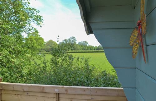 Enjoying a peaceful, rural setting within the owner’s lovely grounds, this charming shepherds hut is the ideal romantic retreat, with a cosy wood burner. . 6 steps to entrance.