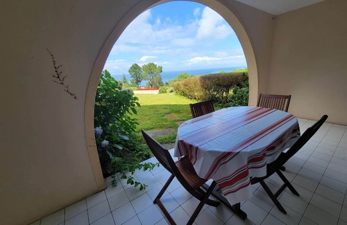 "Beautiful modern apartment with pool on the Bordagain hill. Located on ground floor, in complex, comfortably furnished. Living room giving onto terrace with nice sea view and with double sofa bed. Basic open kitchen with hotplates. 1 bedroom with double bed and direct exterior access. Located 1,2 km far from Socoa beach, 1,4 km from Ciboure historic city center, 2,1 km from Saint Jean de Luz city centre and 2,4 km from "" la grande plage de Saint Jean de Luz""."