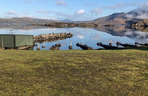 Double bedroom on first floor with balcony has amazing Lake View. The open plan Kitchen/ Living accommodation is bright yet cosy with a solid fuel stove. Oil Fired Central Heating & triple glazed windows all contribute to making this cottage economical and cosy at the same time. Hogs Head golf club is 5 minutes and waterville golf club is 10 minutes. there is access to the lake shore whare salmon and sea trout fishing can be arranged and boat hire