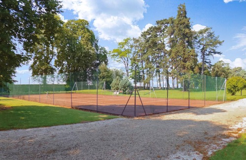 Located in the right wing of the former stable of the magnificent Château de la Trousse, this magnificent, very bright apartment with plenty of space will enchant you with its unique charm. The living/dining room with its dark parquet in contrast with the light walls invites you to relax. The fireplace stove gives this huge living room a very warm character. The wood, the dominant material of this apartment in combination with the arched windows reminds of the former purpose of the building. There is no doubt that this vacation apartment is very popular. The pool and tennis court are accessible to residents of the almost 20,000 square meters of parking area. For those who wish to travel to Paris by car, the capital is only 45 minutes away and Disneyland Paris is only 35 minutes away.