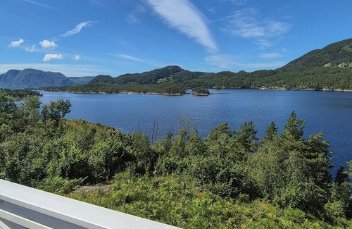 Welcome to this fantastically situated holiday home, where you can see the fjord as soon as you wake up. Here you can experience nature up close and enjoy a unique panorama at the same time. Make yourself comfortable in the bright, cosily furnished rooms after your excursions, the sofa invites you to relax after an eventful day and let your gaze wander over the water.