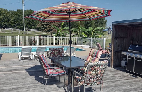 Venture outside and you'll find a heated private pool, perfect for a refreshing dip on a warm day. Soak up the sun on the beach loungers. Bring a fishing pole, try your luck at the fully stocked fishing lake. Explore the nearby attractions, such as the My Old Kentucky Home State Park and the Heaven Hill Bourbon Heritage Center, both just a short drive away.