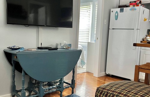 Our cozy, cottage by the sea is located behind our family home where we live full time. We are 1 block from the beach and 5 blocks to Main Street. 2 bedrooms,1 bath with washer/dryer, living room kitchen combo. 1 bedroom with queen bed. 2nd bedroom with 2 twins. Hardwood floors. Start your day on the great front porch or relax with a glass of wine at the end of the day. After your day on the beach come back and take a refreshing outdoor shower. Hungry? Gas grill provided or enjoy one of the many great restaurants in town. 4 beach badges, 4 beach chairs, 4 beach towels provided during your stay. Cleaning fee included in price. Parking is on the street. During summer rentals are Sunday to Sunday. Our cottage is not suitable to group rentals under 30 years of age. We rent to adults and families, so it's helpful if you include a description of your group. Please call Jean to reserve your dates.
