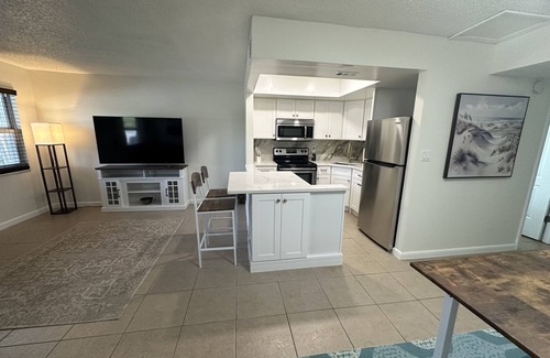 Indulge in coastal charm at our newly renovated one-bedroom beach condo, just a two minute stroll from the pristine shores of North Hutchinson Island in Fort Pierce, Florida. Immerse yourself in comfort and style with modern amenities, tasteful decor, and the soothing sounds of the ocean. Perfect for a romantic getaway or a relaxing solo retreat. your perfect vacation awaits- book your stay now and experience the beauty of Fort Pierce from this charming beachside haven.