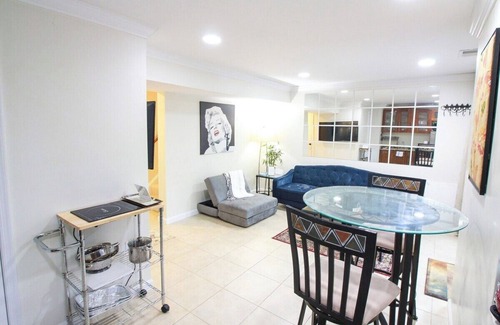 Cozy basement apartment in an end-unit townhouse with private entrance, kitchen, bath, and laundry. Includes 1 Queen bed, sofa, and small kitchenette with fridge, microwave, coffee maker, toaster, and single induction cooktop. Full bath and hardwood floors were renovated in 2022. Quiet ceramic heaters and AC control for comfort. Laundry room with large washer/dryer. Private entrance via a backyard gate with a glass sliding door. Parking available for $15/night with a $100 deposit. Pets allowed with extra fee. Safe, family-friendly neighborhood. Contact for temperature preferences or any requests to improve your stay.