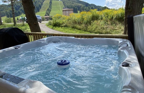 ☀ Spacious deck with hot tub overlooking the mountains