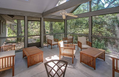 Nestled within the scenic maritime forest of Sea Pines, this home offers a peaceful and central location for your Hilton Head Island getaway. The bright and airy interior is perfect for relaxation and gatherings, featuring spacious bedrooms, a large master suite, a comfortable living room, and a delightful Carolina room. One of the highlights of this home is the large, private deck with views of the maritime forest, accessible from the master suite, living room, and Carolina room. It's an ideal spot for outdoor cooking, family cookouts, or simply unwinding and enjoying the natural surroundings.