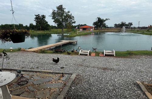 Guest are welcome to fish in the pond, use the covered pavilion, take pictures standing on the bridge, play horseshoe, use of fire pit, use of barbecue pit and walk on the walking path around the pond. No more than 4 guest allowed on property unless prior permission granted.