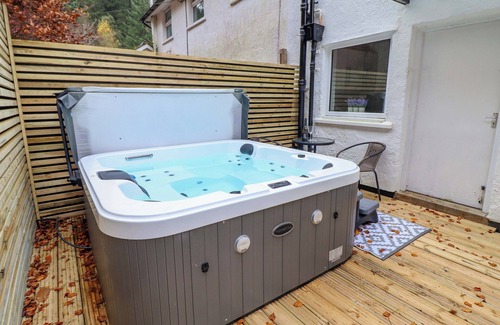 1 Minafon is a cottage consisting of a kitchen with a microwave, kettle, toaster, electric oven, electric hob, and fridge with ice compartment, a utility room with washing machine and tumble dryer, a cloakroom with a WC, a dining room with seating for six, a sitting room with a woodburning stove and Smart TV, and a conservatory. The bedrooms consist of a king-size with a TV, a double, and a child's bunk, serviced by a bathroom with a bath, shower over, basin, and WC. WiFi, fuel, power, bed linen, and towels are included in the rent. Outside, there is an enclosed front garden with lawn, bench, furniture, an enclosed rear courtyard with furniture and a hot tub, and off-road parking for two cars. Sorry, no pets and no smoking. Guests can find a shop and pub within 3.5 miles, and within 0.1 miles, a river. Make memories with a stay at 1 Minafon. Note: There is a Good Housekeeping Bond of 350GBP.