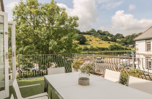 1, River Cottage is a smart attached cottage on three levels with lovely, long, elevated views up and down river, in the centre of Calstock. Sleeping five in three bedrooms two double one with an en suite shower-room and balcony and a single with door to terrace. Family bathroom. Cosy living room with wood-burning stove and kitchen/dining room. Utility room and WC. At the side is an enclosed courtyard with BBQ and at the front, a sunny little paved area with a bench looking over the green to the river. Lovely walks from the village with footpath to Cotehele House (National Trust), 1 mile. Fun canoeing expeditions. Once a thriving mining valley, now a World Heritage Site dominated by birdsong.