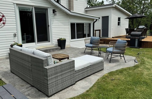 Hickory Creek Cottage - Relax with the whole family at this peaceful century home located in Forest 10 minutes from Ipperwash beach on Lake Huron. Built in1890 this home has been renovated with rustic charm and sits on an acre of land with hickory creek running through the back. Wake up and sip your coffee on the patio, deck, front porch or around the fire pit. There's a yoga studio, games room and plenty of space in the back yard for soccer, badminton, cornhole and more. Beaches, golf courses, wineries and cideries all nearby.