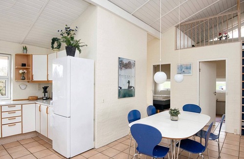 Approx. 50 km from the Danish/German border is this holiday cottage on a 1000 m² large natural plot. The house was renovated in 2013 and has activity room in the basement and several facilities in the wellness area. In the activity room you can play billiards or table football. Pool area with the swimming pool, whirlpool, sauna and steam bath in connection to one of the bathrooms and access to the activity basement. The entire family will therefore naturally gather in the wellness and activity area. The pool is 5,2x2.8 m and has a counter current system. The dining area and living room is adjacent to the kitchen and are very comfortably furnished. Combined solar energy and heat pump system makes the house very energy-efficient and power saving. There is a ladder leading to the mezzanine which will undoubtedly be the children's favourite place. There is a wood-burning stove for cosy evenings. The terrace next to the kitchen is closed by glass and from here you can enjoy the sunrise and view of the area all year. In the garden you will find a trampoline (usage at own risk/insurance).A refundable deposit might be charged closer to your check-in date. Thesecuritydepositensuresasmoothstayandcoversany additionalservicesorconsumptioncharges.Thisdepositcoversutilitiesconsumedduringyourstay andanyadditionalservicesthatmaybetaken.Thefinalamountwillbeadjustedbasedonactualmeter readings,actualusageofextraservices,andanyremaining balancewillberefundedwithin21daysaftercheckout.Thisdepositsimplyactsasaprepaymentforchargesthat youwouldanywayspayfor,ensuringaseamlessstayand check-outexperience.