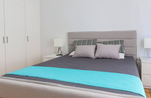 The flat offers two bright and air-conditioned bedrooms. They offer 30" smart TVs and have access to the balcony. Both rooms are very spacious, bright and offer wooden flooring.
