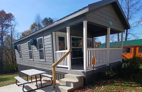 Come enjoy a fully furnished cabin in the quiet wooded hills of Hocking Hills area. Inside the beautifully cabin you will enjoy a living area with a TV, a full kitchen, and a full bathroom. Sleeping accommodations include two bedrooms, one with a queen bed and the other with a bunk bed. The sofa in the living area folds out as a full bed for extra guest. Cabin equipped with a TV in the bedroom, and a TV & DVD player centrally located in the main living area. Central air-conditioning and heat keep the cabin comfortable in all seasons. Your outdoor living space will include a front porch with chairs and a rocker. Each cabin has its own outdoor charcoal grill, composite picnic table, and a grassy area with a fire pit. A parking pad is provided in front of the cabin. All campground amenities are available with this registration. Young children are free, please do not include children 2 and under in your guest count.
