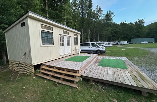 Our digital nomad cabin has good wifi, a full bed, half bath, with workstation and is right on the river directly looking out over the fishing lake. Relax with heat/air conditioning a tv screen and coffee pot. A huge deck can accommodate tents for friends. Down the street is a small grocery, and world class WV diner. We have a really nice bath house for showers. This place is one of the most beautiful spots in West Virginia, and close to all the regions major attractions. Shopping in Webster Springs is just a short drive, and we have a peaceful environment just to relax. We are surrounded by rivers and there are several good swimming holes at camp, along with a 1 mile hiking trail up the mountain. This place is perfect for single or double travelers looking to get away.
