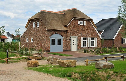 "11 persoons Luxe", 6-room farmhouse 150 m2. Spacious, comfortable and stylish furnishings: entrance hall with separate WC. Living/dining room with dining table, flat screen and radio. 1 double bedroom with 2 beds. 1 room with 2 beds and flat screen. Open kitchen (5 hot plates, oven, dishwasher, kettle, microwave, electric coffee machine). Sep. WC, double hand-basin, hydro massage shower. Underfloor heating. Upper floor: entrance hall with separate WC. 1 room with 3 beds and flat screen. 2 double bedrooms, each room with 2 beds and flat screen. Double hand-basin, hydro massage bath, Sauna. Terrace. Terrace furniture. Facilities: washing machine, dryer. Internet (WiFi, extra). Parking at the house. Please note: non-smoking house. Smoke alarm. Pets on request. ENERGIELABEL: A
