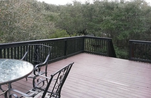 Private entry with large deck in quiet neighborhood. With large living area and full kitchen, Rain shower & double vanity bath