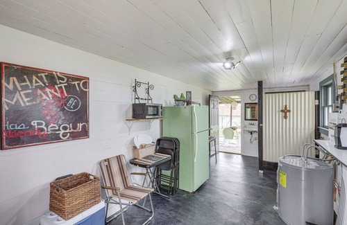 Nestled on 14 acres just east of Temple, TX, this charming vacation rental in Burlington flawlessly blends rustic and modern comforts. The heart of this country getaway is a restored 3-bed, 1-bath farmhouse with intact original features. You'll also find a 1-bed, 1-bath bunkhouse and a cantina with a half bath and an outdoor kitchen on-site. Grill some steaks, tell ghost stories by the fire pit, or paddle around the 2 ponds. Complete your memorable escape with a visit to the local wineries!