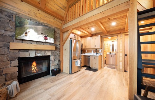 Perfect for a romantic getaway or a small family, this cabin takes in the picturesque lake views that can be enjoyed during any season. Spend your time discovering hiking trails around the property, fishing in one of our lakes, or exploring the charming town nearby, this cozy oasis will welcome you home at the end of the day. Enjoy a peaceful evening under the stars around your private fire pit or take in the views from your porch during your morning cup of coffee. This cabin isPET FREE
