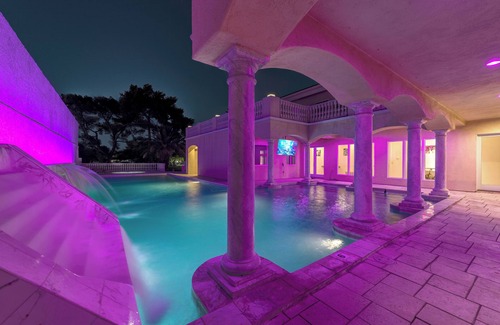 Huge POOL & SPA, 15,000 SQFT indoor space & 1.5-ACRE Oasis. Perfect for business travelers, groups, or families in Las Vegas! Accommodates 25 guests in 9 luxurious bedrooms & 6.5 bathrooms. Outdoor area with 24/7 pool & games. Close to all attractions. Brand NEW Décor & linens!