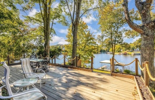 Enjoy sitting lakeside in the rocking chairs on the new screened-in porch, or watch the sun set over the water down at the dock on the Adirondack chairs surrounding a SoloStove fire pit.