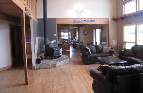 The main floor has a wood burning stove and plenty of seating for everyone plus a really really nice view of Chief Mountain.