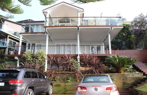 Perfect for large family groups or couples with its location and split levels, this modern idyllic 5 bedroom beach house is positioned just one street back from the beach and main strip of shops, making it a flat easy 150m walk to everything! Outdoor decks overlooking Copacabana beach and house is split over 4 levels and offering all the amenities you need for a relaxing holiday.