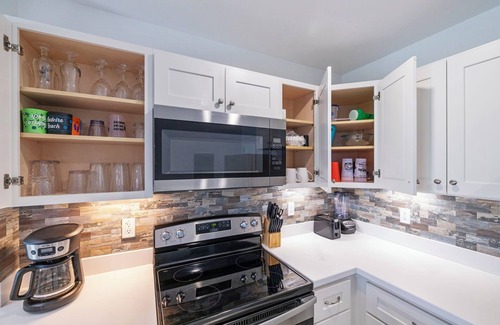 Kitchen: The kitchen has all the things to cook your meals, including pots, pans, serveware, blender, coffee pot, bakeware, dishwasher, and a large refrigerator/freezer. Basic dishes, cookware, and utensils are also provided. Basic spices, cooking oil, coffee filters, and/or pods are not always available.