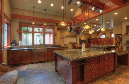 The kitchen comes with double Wolf ovens with a griddle and SubZero fridge and freezer. But if that is not enough there are two more full kitchens in the home with two more full fridges, full freezer and two fridge drawers. Four dishwashers in the home help make clean up a snap. The kitchen work area was designed for lots of cooks helping and not getting in each other's way. There is also an oversized outdoor grill next to the outdoor fireplace.