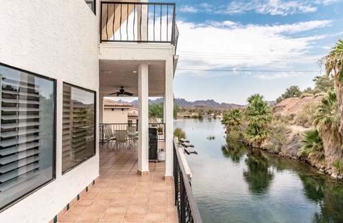Gorgeous 7,500 sq. ft. tri-level PANORAMIC RIVER VIEW HOME LOCATED ON RIVER CANAL AT RIVER ENTRANCE WITH PRIVATE DOCK! 4 bedrooms and 5 bathrooms, plus 10 dorm style beds on lower level game room floor.