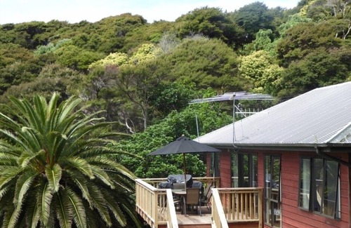 This quintessential kiwi bach is located an easy 2 mins walk from one of the island's best beaches, Palm Beach.