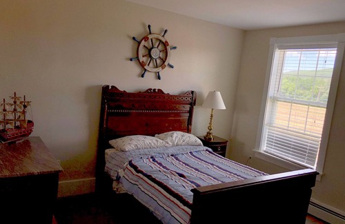 Your rental is an expansive 1,800 square feet with a full kitchen including beautiful cherry cabinets and stainless steel appliances. There is a large open concept living room, full bath and laundry room on the first floor. The second floor has three bedrooms, The Captains Quarters and The Victorian Room each have a full bed and The Bunkhouse Room has four twin beds. There is also a ¾ bath upstairs.