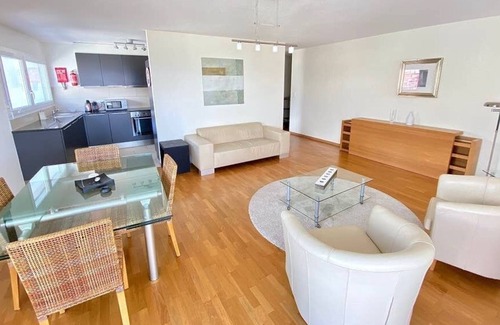 Nice spacious and bright apartment very well equipped. For 7 persons if we add an extra comfortable bed in the common space. 3 bedrooms, 2 bathrooms and a nice terrace with views on the City. Close to the EPFL and Unil with the M1 and 12m walking distance to the Flon, perfect for shopping restaurants. Free wifi and private parking. Supermarket 5 minutes walk. Fully equipped kitchen with dishwasher, Nespresso coffee machine, oven, microwaves, toaster, etc. wifi, TV. Washer/dryer