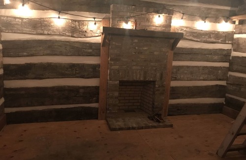 Very unique property. The logs are from a cabin built in 1830. They were transported here and reassembled. This is a very rustic cabin. Be ready to step back into the 1800's It is equipped with a small frig, microwave, Coffee pot. Otherwise it is like a cabin on the frontier. No running water but a pitcher and bowl to wash up.. There is a double bed in the loft with a ladder access to it and trap doors leading to stairs, Main heat is a fireplace but also a small heater to help warm if it is cold. Several fans are provided to help cool but no air conditioning. Just added a shower and toilet in a separate outbuilding. Heater in the outbuilding