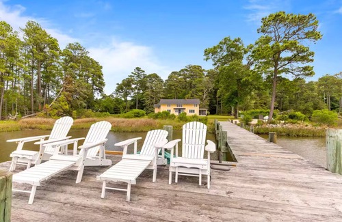 Bring your family and relax in this Log Cabin School, hand built in 1899. Situated on a private peninsula, and with over 10 acres you will have unbelievable views and access to everything nature has to offer on both land and water! With its own private dock and beach, you will be equipped with kayaks, canoes, fishing rods, and crab traps to spend the day adventuring the Chesapeake Bay. Or you can sit back and relax on one of many water side hammocks, or just enjoy a fire on the private beach.