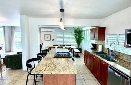 Discover our new listing, just 18 mins from the airport! As Superhosts with over 350 5-star reviews, we offer a peaceful retreat for up to 14 guests. Relax on a private acre with breathtaking mountain & ocean views, a spacious 35’ x 15’ pool, and a BBQ-equipped gazebo with a hammock. The 5-bedroom, 7 beds, 4-bath home has a large, fully-equipped kitchen, tech-free conversation lounge, game room, & workspace. Enjoy serene nature & quick access to essentials, only 20 mins from beautiful beaches!