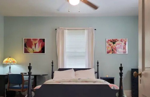 Spacious, historic 2nd floor apartment, overlooking a whimsical Victorian garden. The apartment has two bedrooms with full sized beds a kitchen, bathroom, and living room witch can be used as single bedroom with a twin size bed. We live on the first floor level of the home and are happy to provide you with any local information.