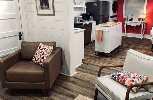 Reunion House Unit B is nested on Short 7th Ave tucked between the Warehouse and Laurel's Downtown Historic Districts. Reunion House is a 1930s Bungalow with a shared front porch across the street from HGTV's BirdDog Cafe. True to the deep south farmhouse style with a private back entrance, Unit B has a lovely kitchen and sleeper den with all you need to rest, relax, and easily walk to Historic Downtown Laurel! We would love to invite you to stay with us, where guests experience genuine hospitality in a charming southern atmosphere.